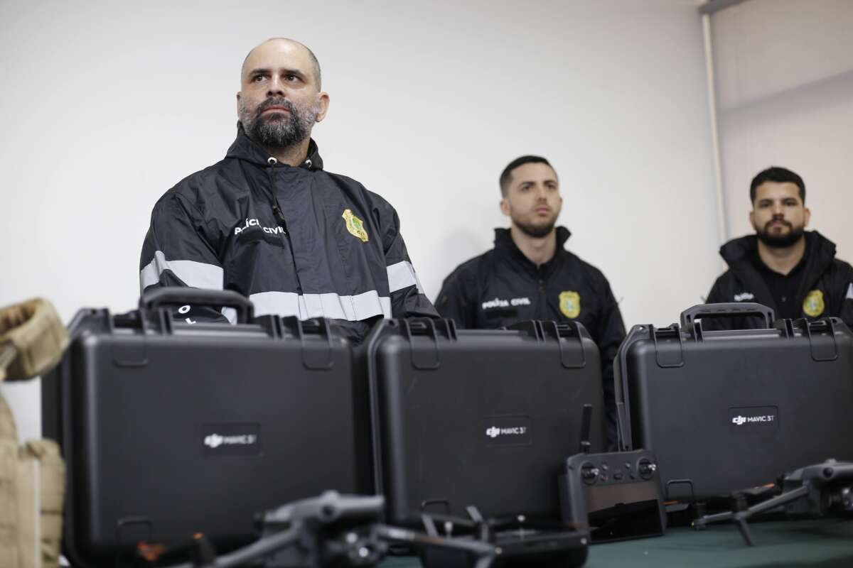 Também foram entregues drones, que serão destinados à Delegacia de Combate às Ações Criminosas Organizadas (Draco) e aos setores de Inteligência da PCCE. Os equipamentos, de última geração, contam com tecnologia de câmeras térmicas e autonomia de quase uma hora de voo, de acordo com o oficial investigador da corporação, Thiago Santos.